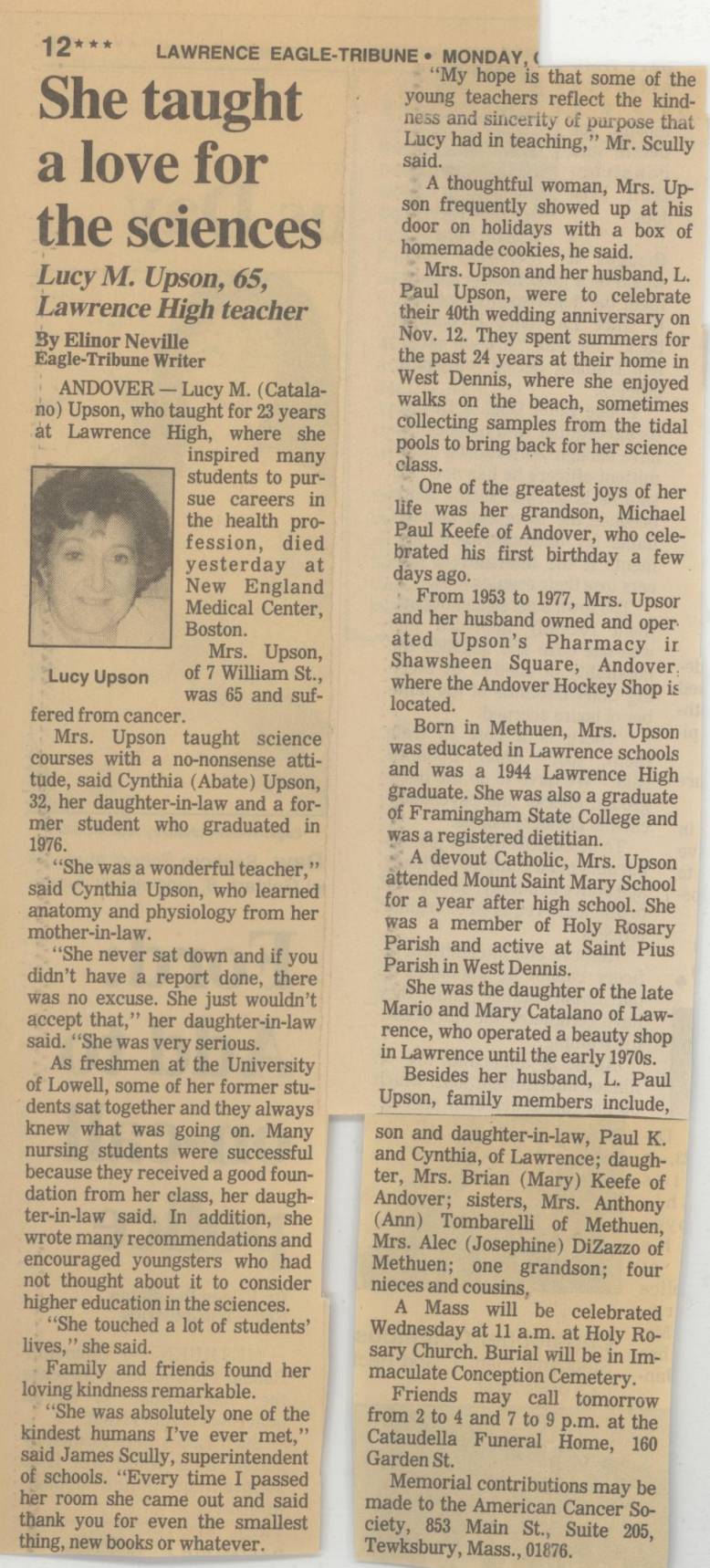 - m. 12 Nov 1950, Paul L. Upson, Holy Rosary Church, Lawrence, Mass.