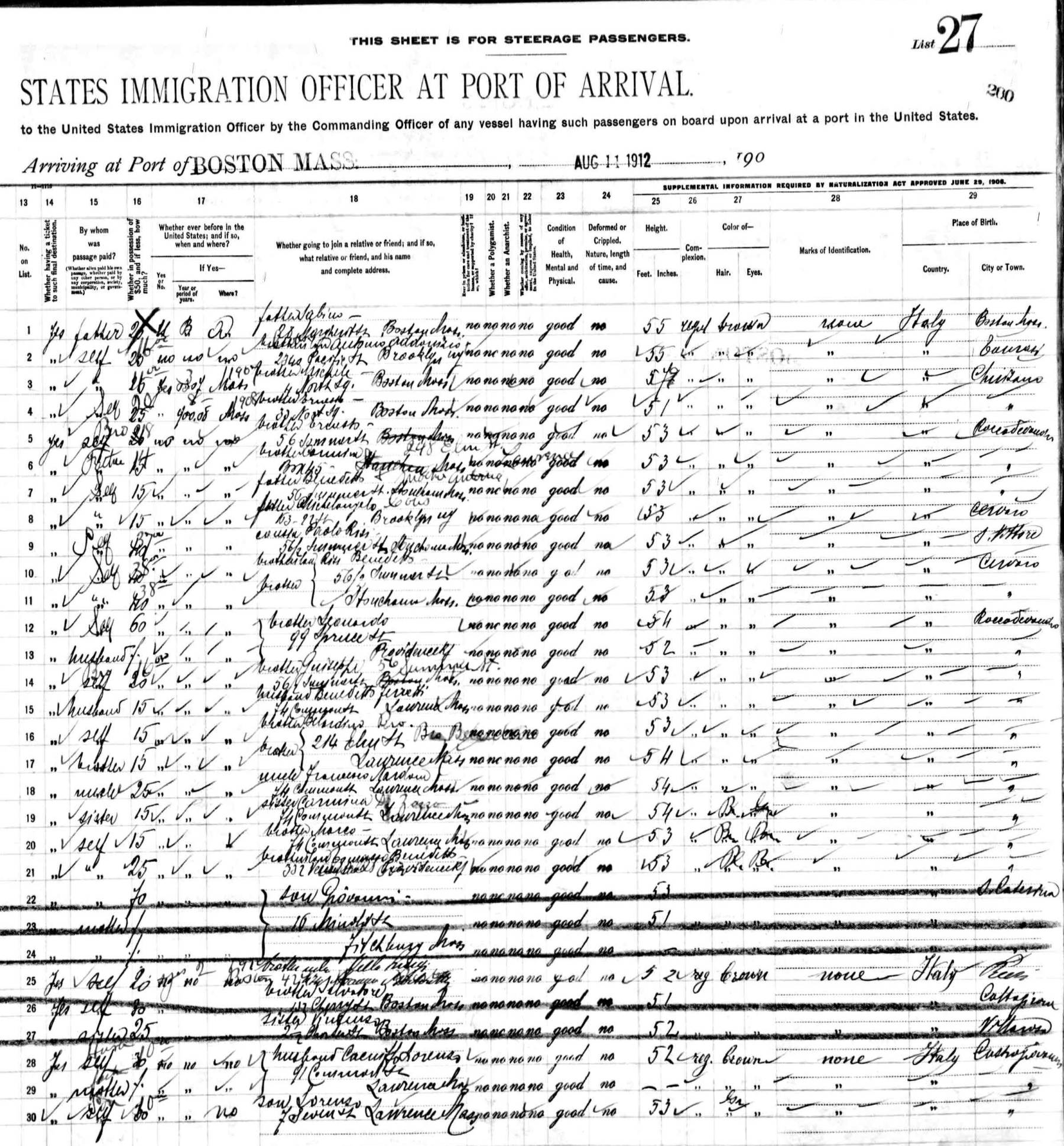 departed Naples 30 July 1912 and arrived Boston 11 August 1912,