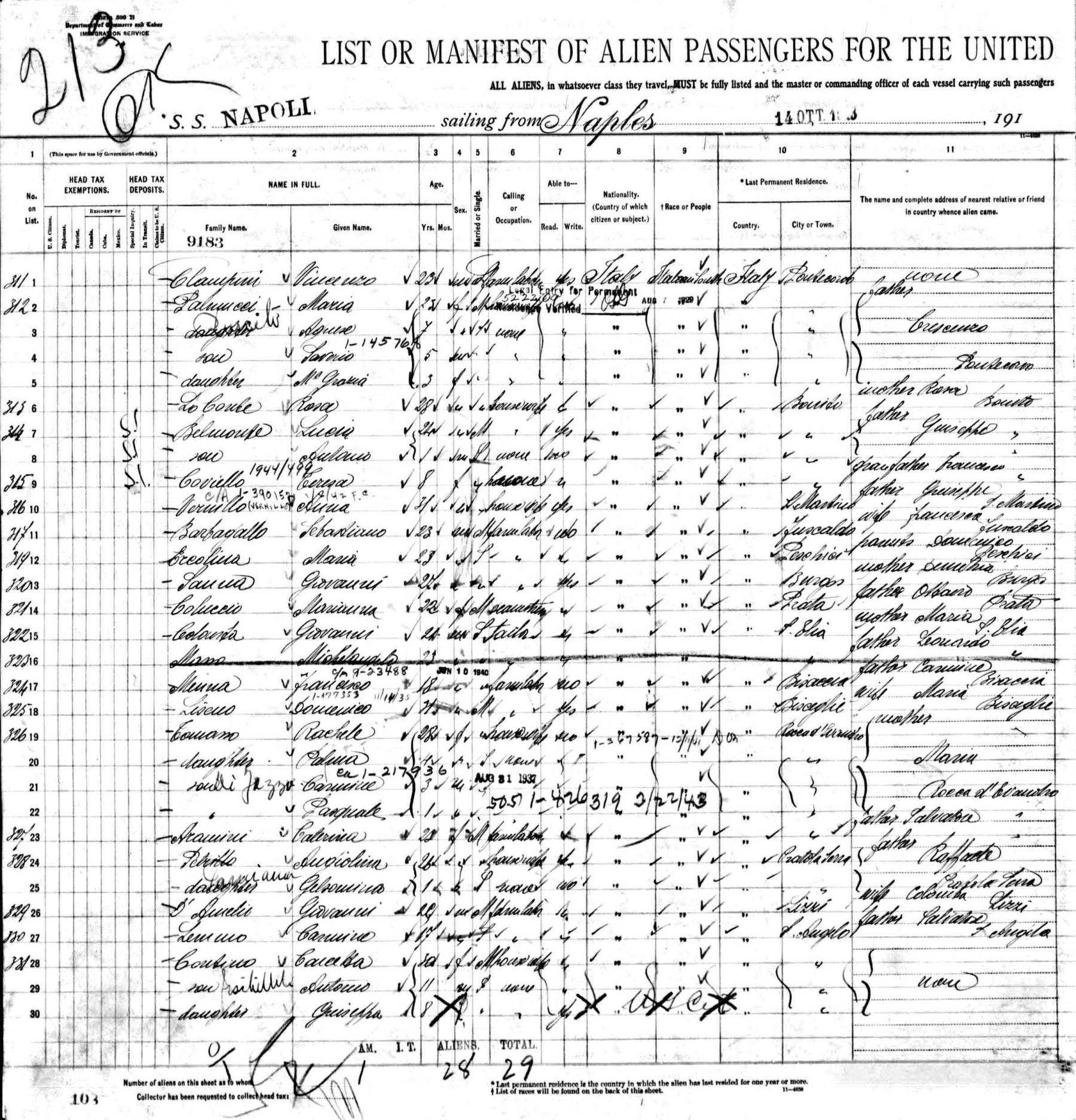 - Carmine (20) born in Italy (and erroneously listed as daughter),