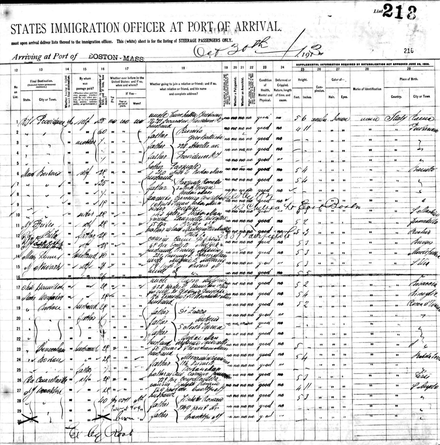 departed from Naples 14 October 1913 and arrived Boston 30 October 1913,