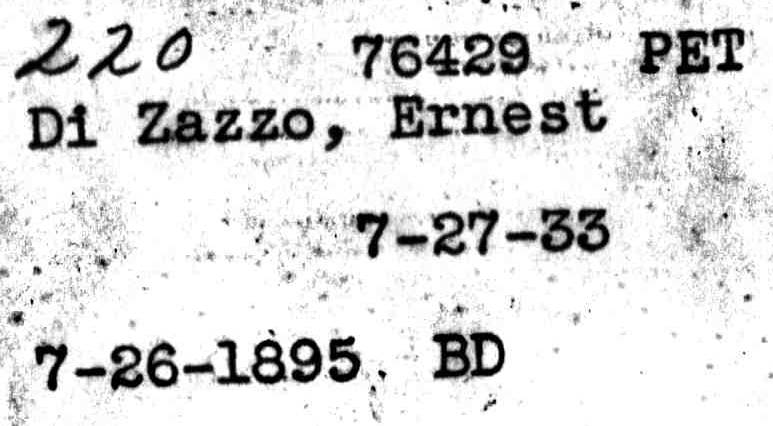 - World War One Draft Registration Card showing Ernest Di Zazzzo,