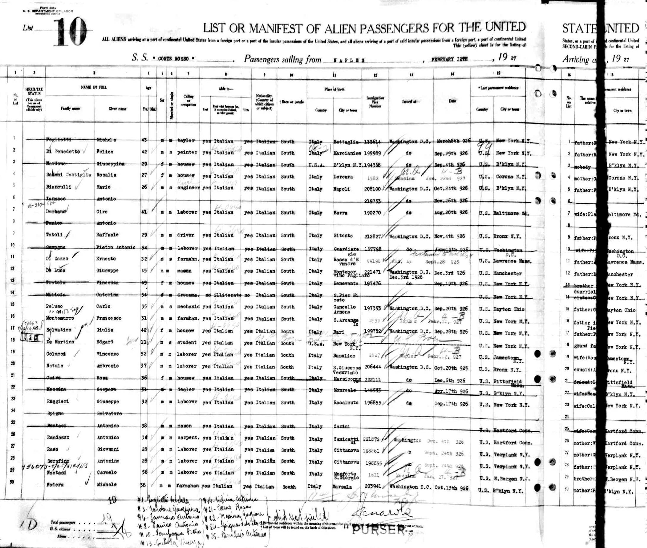 departed from Naples 12 February 1927 and arrived New York 22 February 1927,