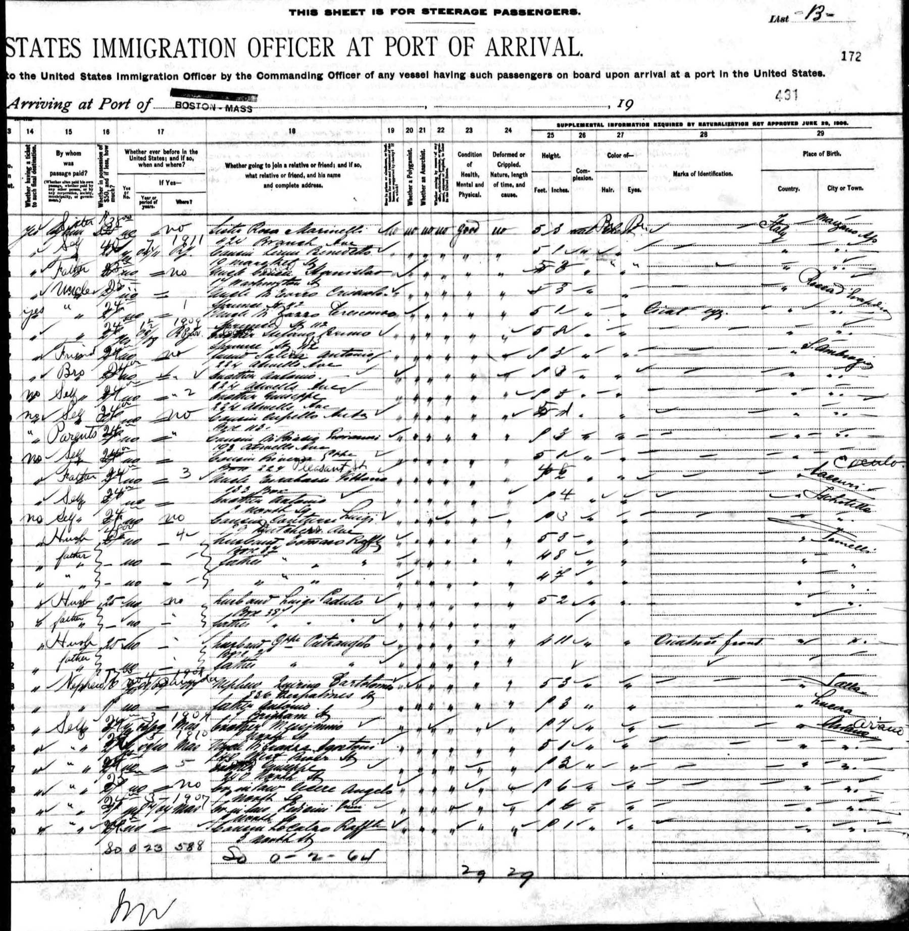 having immigated from Italy in 1911, as incarcerated at the state prison in Charlestown (Boston), Mass.