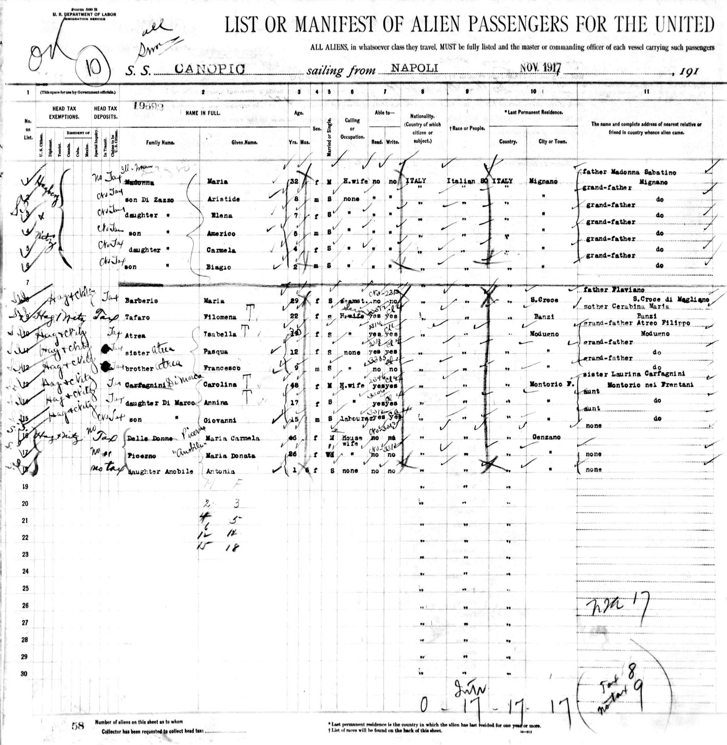 Traveling with him were wife Maria, age 25 and son Giuseppe, aged 9.