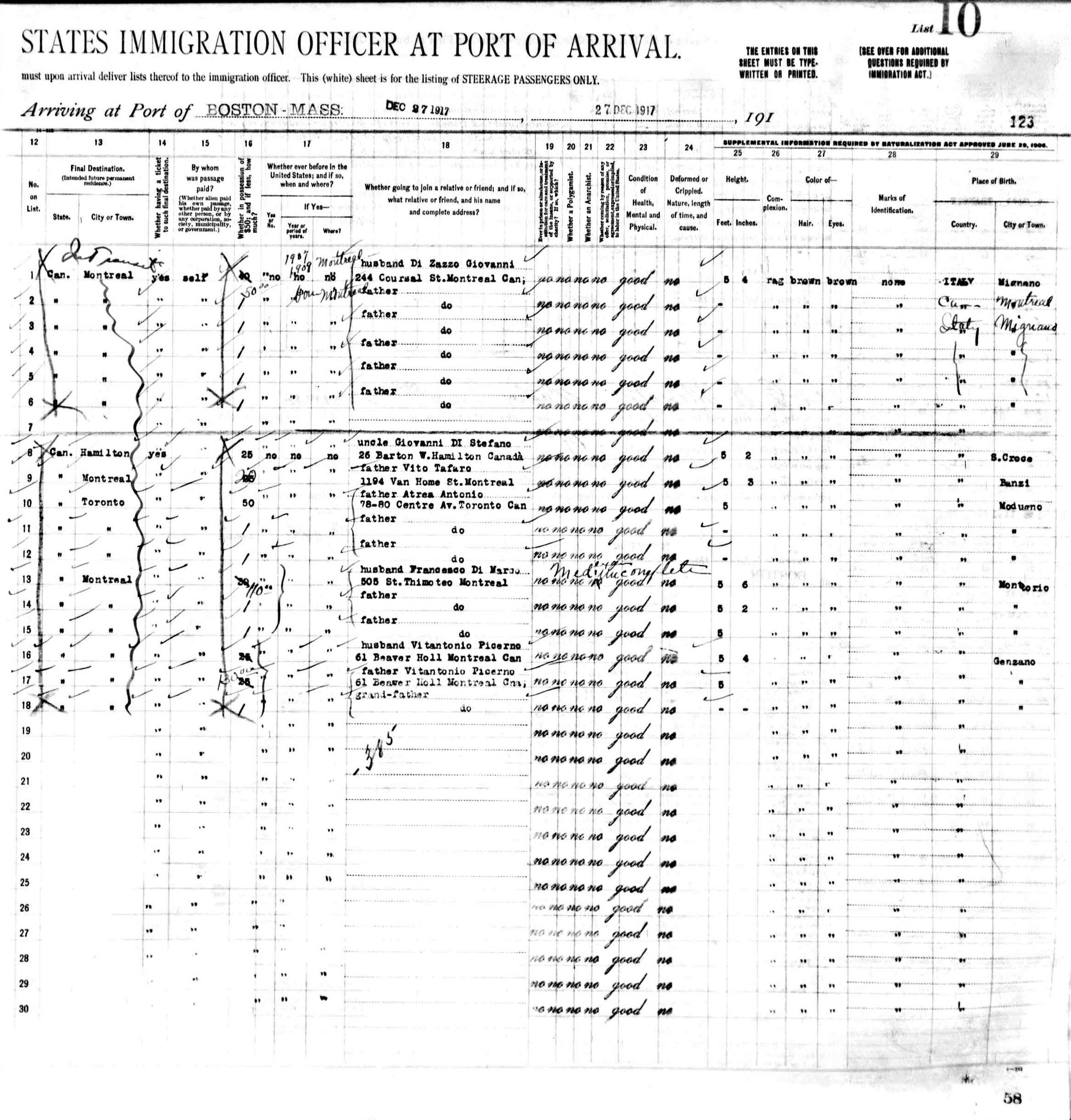 departed from Naples, November 1917 and arrived Boston 27 December 1917,
