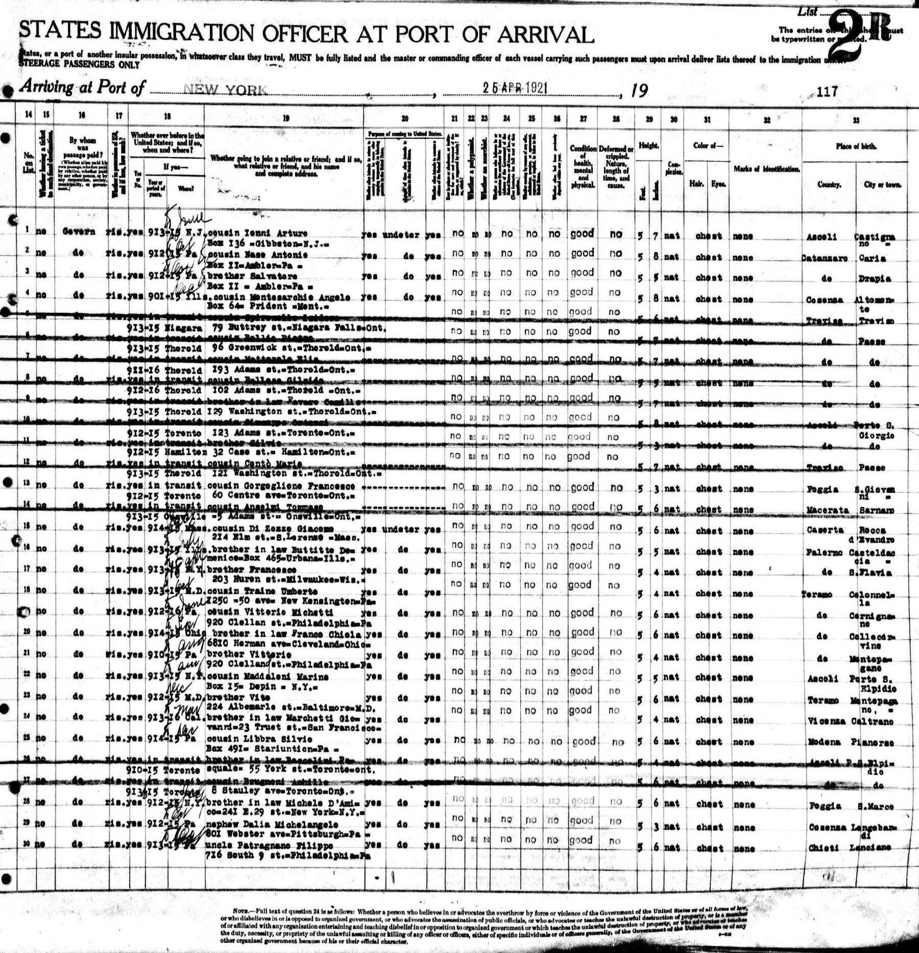 departed Naples 10 April 1921 and arrived Boston 25 April 1921,