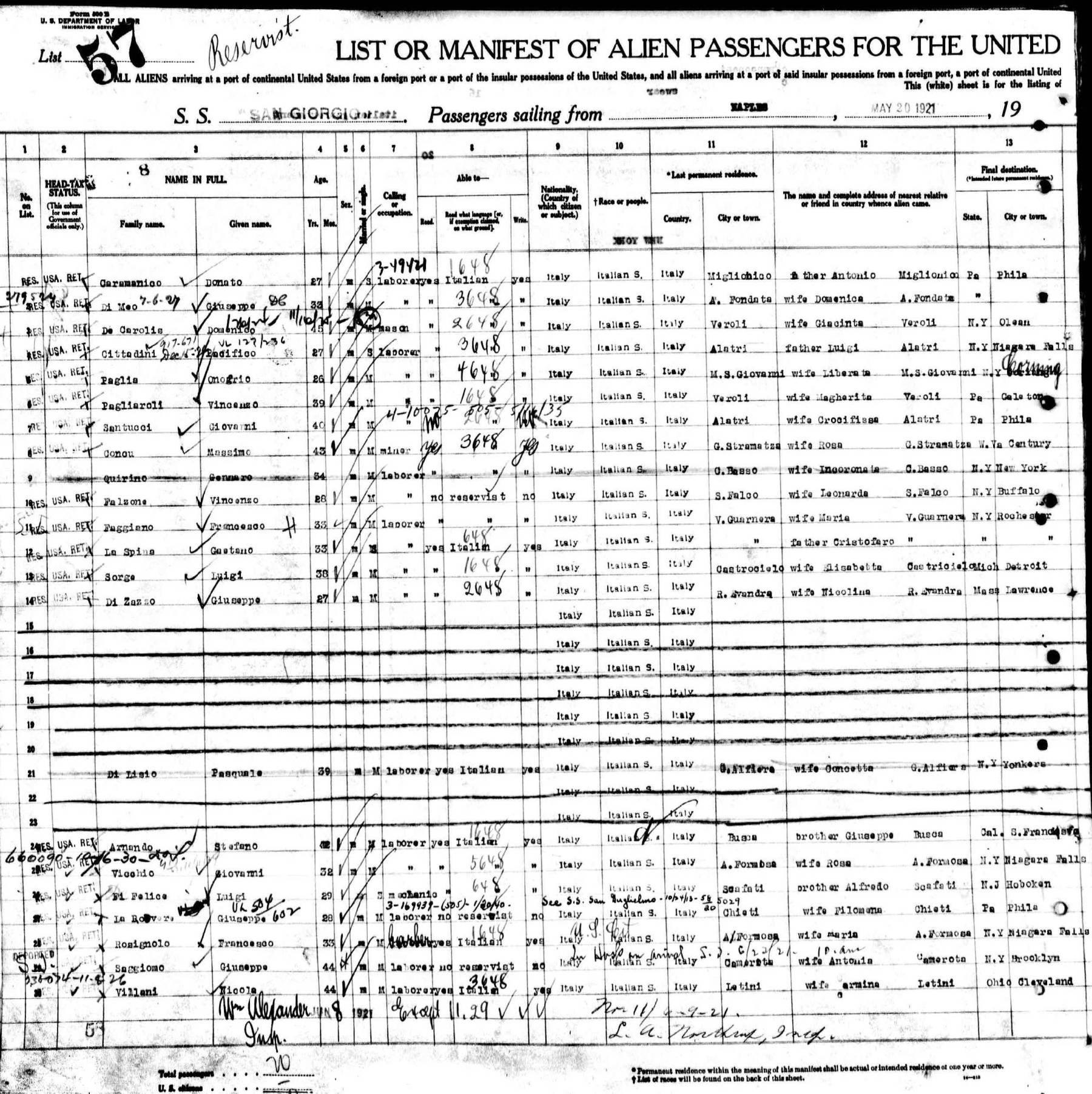 departed Naples 20 May 1921 and arrived New York 3 June 1921,