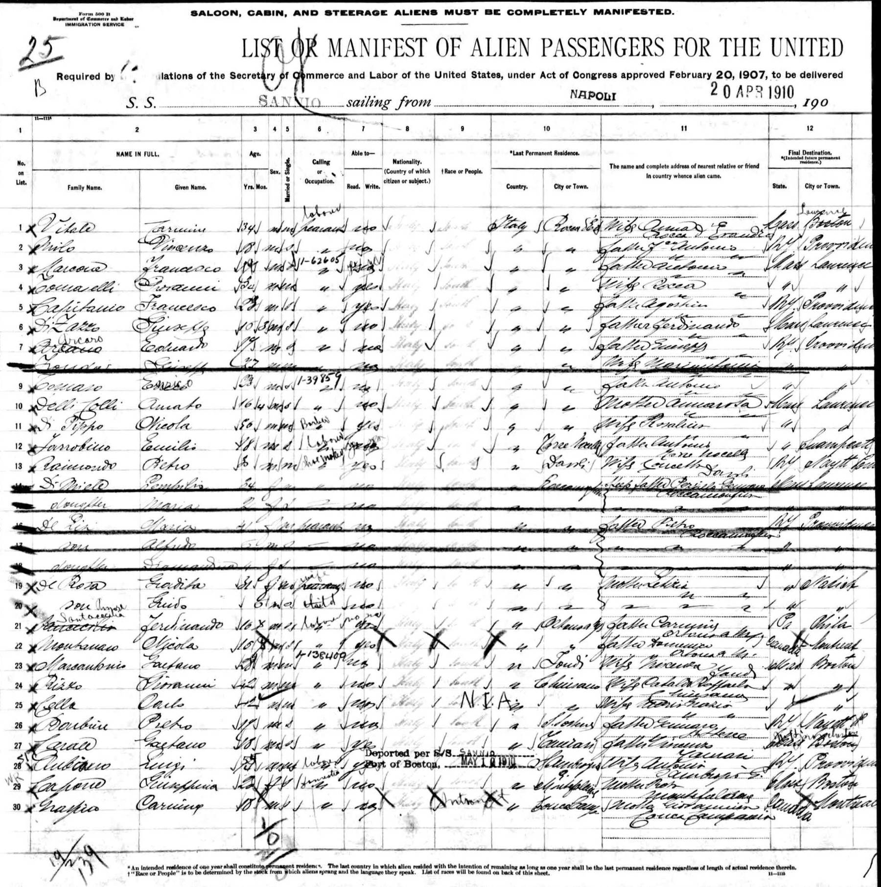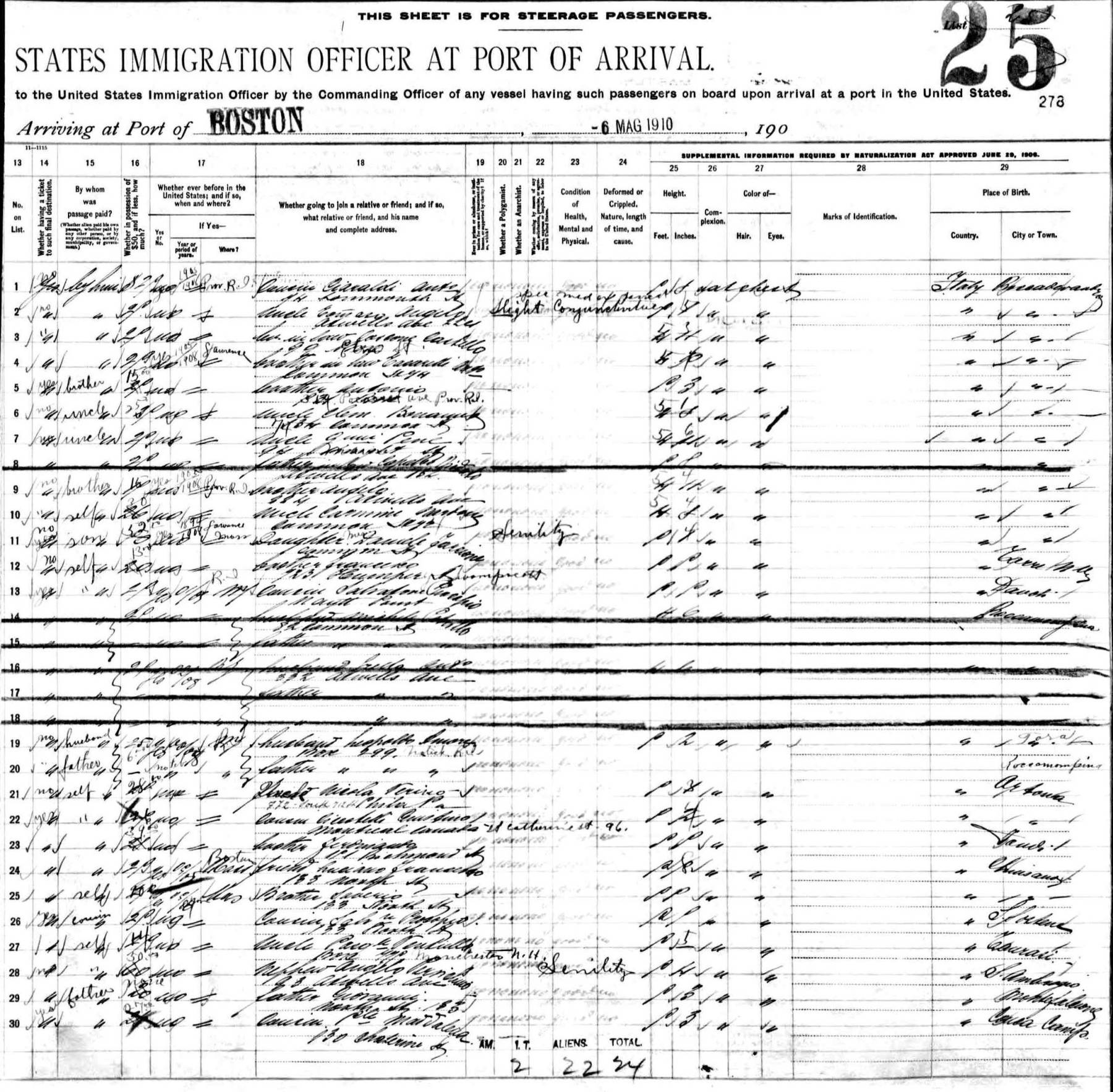 departed Naples 20 April 1910 and arrived Boston, Mass. 6 May 1910,