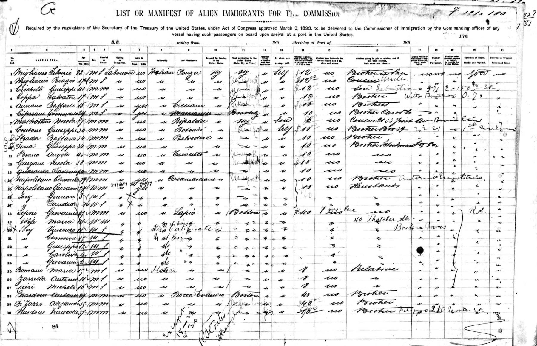 - Ercolo Dizazzo, age 22, boarder, born in Italy.