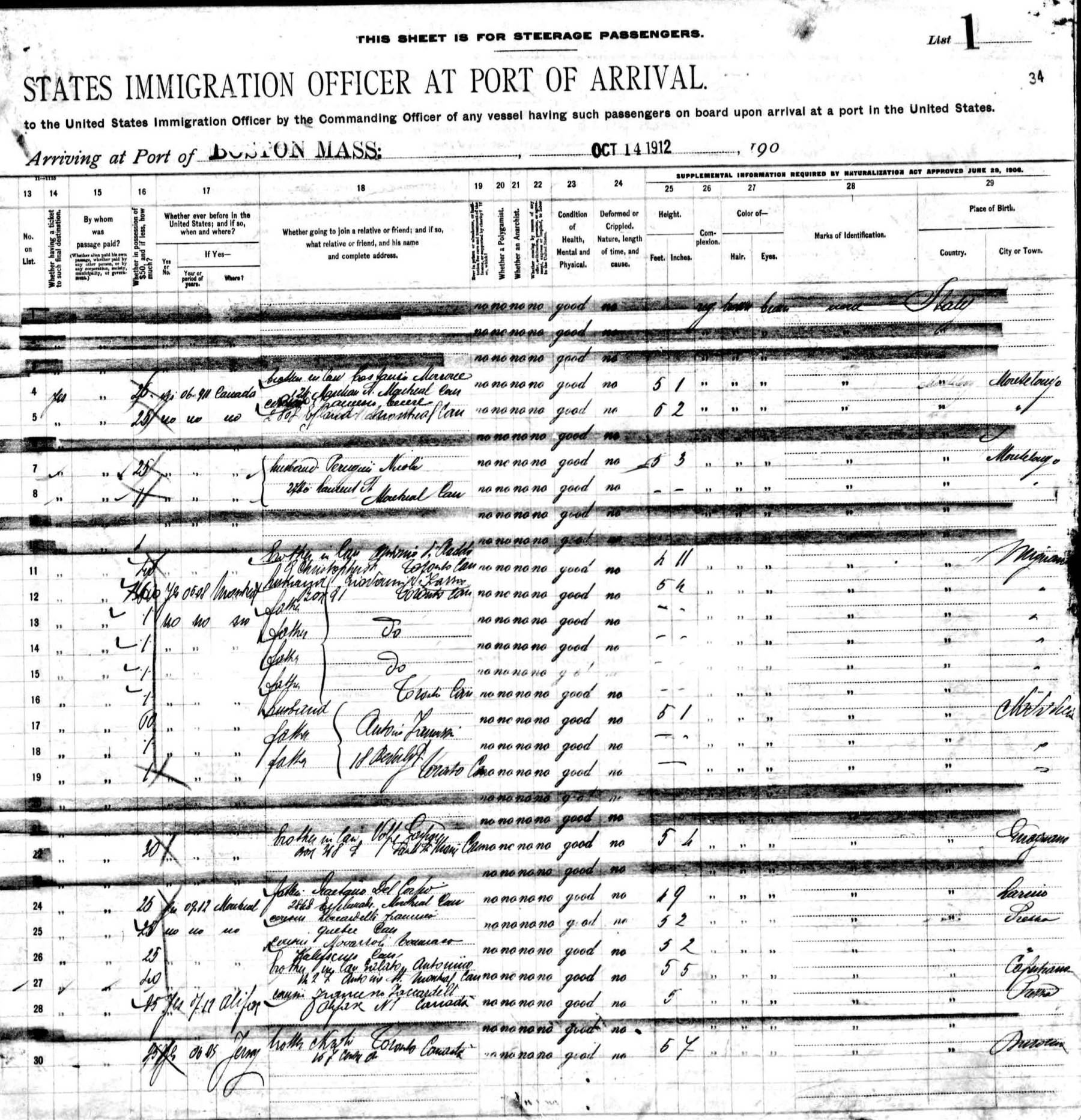 departed from Naples 1 October 1912 and arrived Boston 14 October 1912,