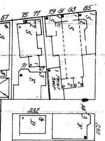 left off Elm St. and then turning to run down. In lower left is 232 Elm St., 1-1/2 story dwelling behind #230; enter from alley.
